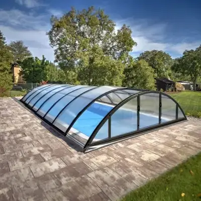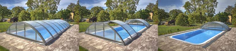 Sa conception par modules indépendants permet de l’utiliser totalement fermé ou de découvrir partiellement la piscine en rabattant les modules.