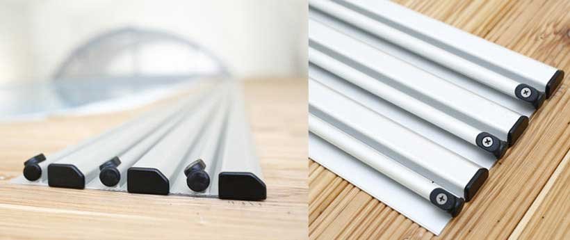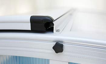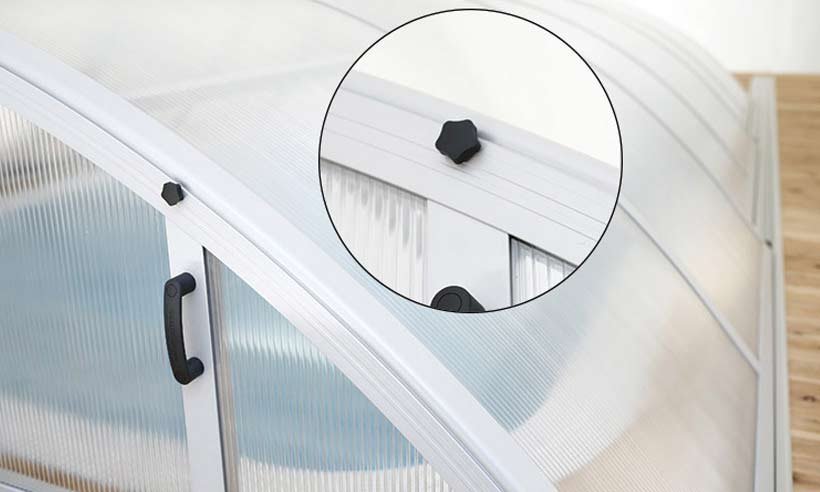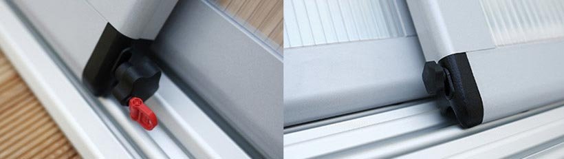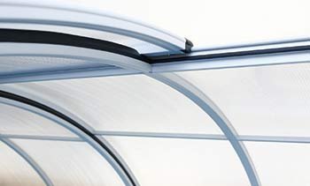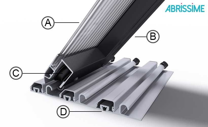 Les parois en polycarbonate alvéolaire sont plus isolantes que les parois transparentes des autres abris. Les modules de l’abri sont coulissantes sur rails et se manipulent aisément.
