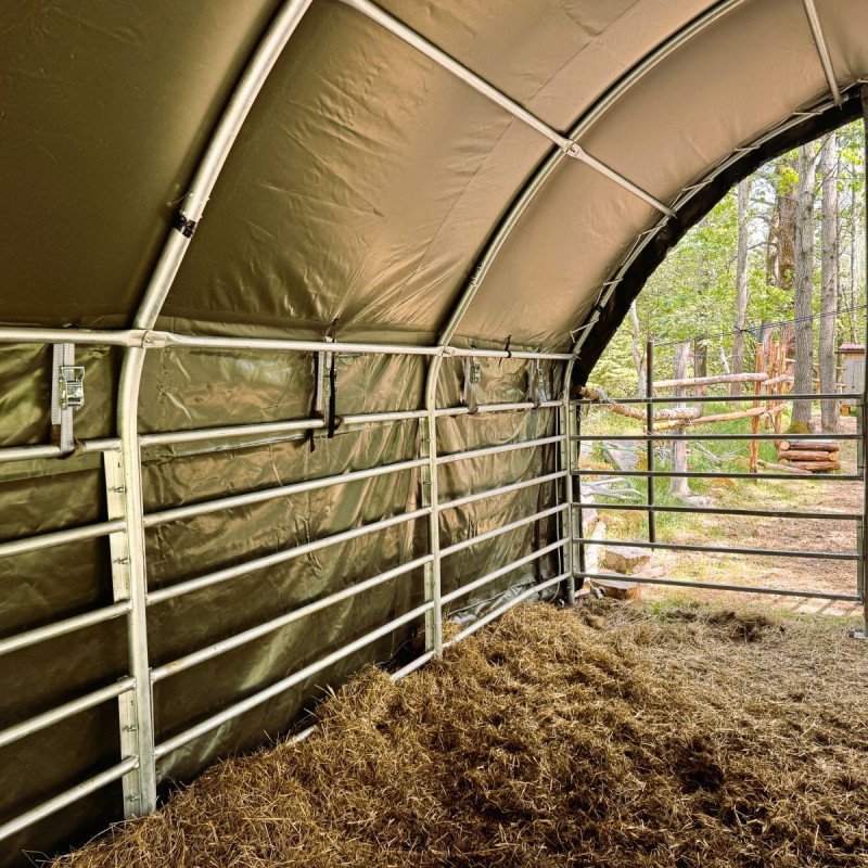 L’Abris pour bétail premium 6×6 m modèle GSCT2020 est la solution idéale pour les éleveurs qui recherchent une structure fonctionnelle et durable offrant sécurité et confort à leurs animaux premium. Grâce à sa bâche relevable sur les côtés et à l’arrière, l’enclos offre une grande souplesse d’utilisation au quotidien : accès facile, ventilation optimale et adaptation rapide aux conditions météorologiques. Le filet d’ombrage offre une protection contre le soleil et les insectes.
