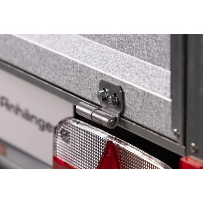 La remorque est livrée avec un roulement de roue compact nécessitant peu d’entretien, un essieu à ressort en caoutchouc de qualité, des feux arrière multifonctionnels de grande taille, y compris un feu antibrouillard arrière et un feu de recul, et de nombreux raccords à vis faciles à réviser. Les 4 crochets d’arrimage sur la surface de chargement offrent des points d’arrimage supplémentaires. La remorque est équipée d’une roue jockey, d’un raccordement électrique à 13 pôles, de pneus neufs, de fermetures de sécurité Stema avec poignée rouge souple sur la paroi arrière et conformément aux directives de l’UE. La livraison comprend la carte grise, la déclaration de conformité CE (papier CoC) et le mode d’emploi.